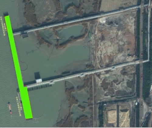 泰州市海螺水泥有限责任公司口岸限定区域:海螺码头开放泊位作业平台外侧2米宽度区域。(图中绿色区域部分)